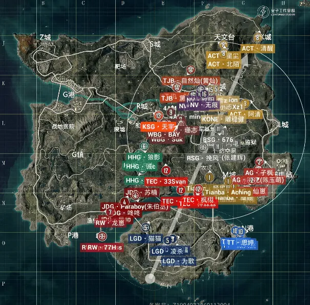 决胜时刻,信号圈缩在G镇附近,圈内剩余杭州LGD战队、广东ACT战队和青岛HHG战队,此时场上2v4v4。HHG战队先被淘汰出局,随后剩余两队展开对战,ACT战队凭借人数优势精准出枪淘汰LGD战队最后一人拿下比赛,ACT获得本场比赛胜利。